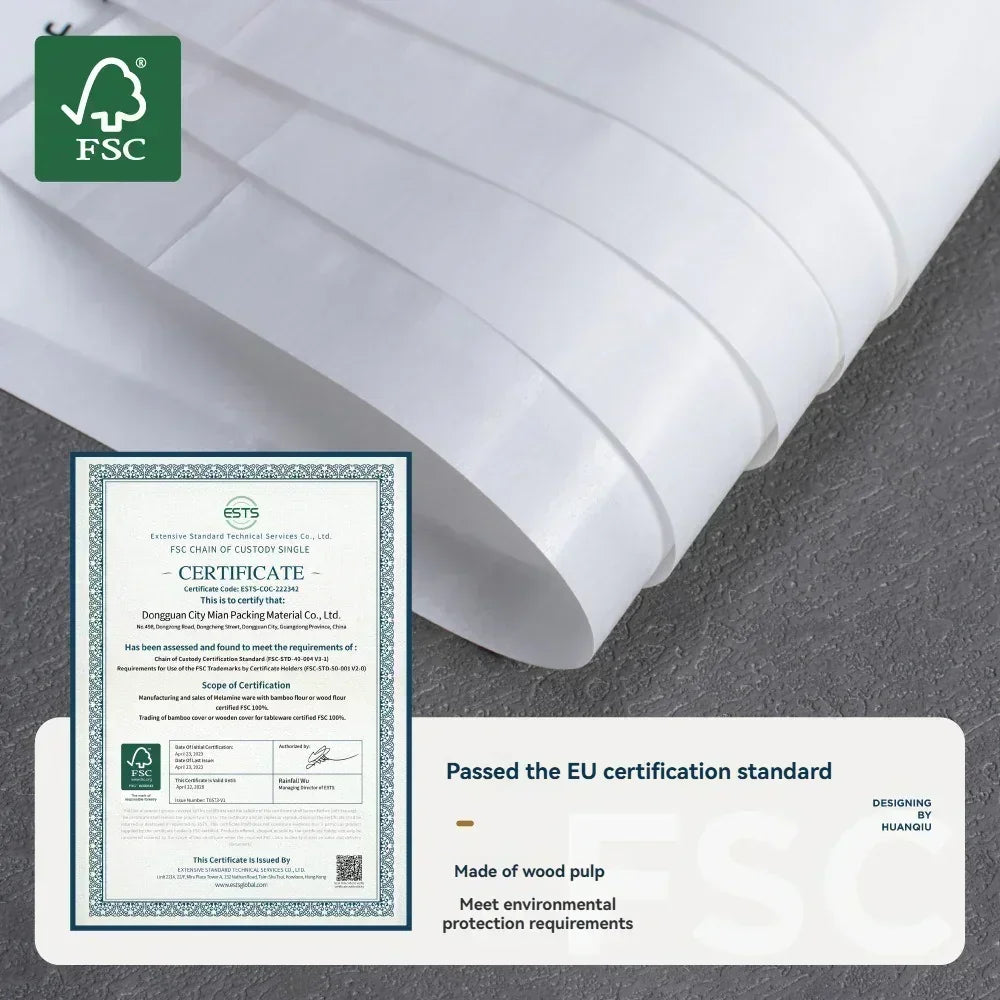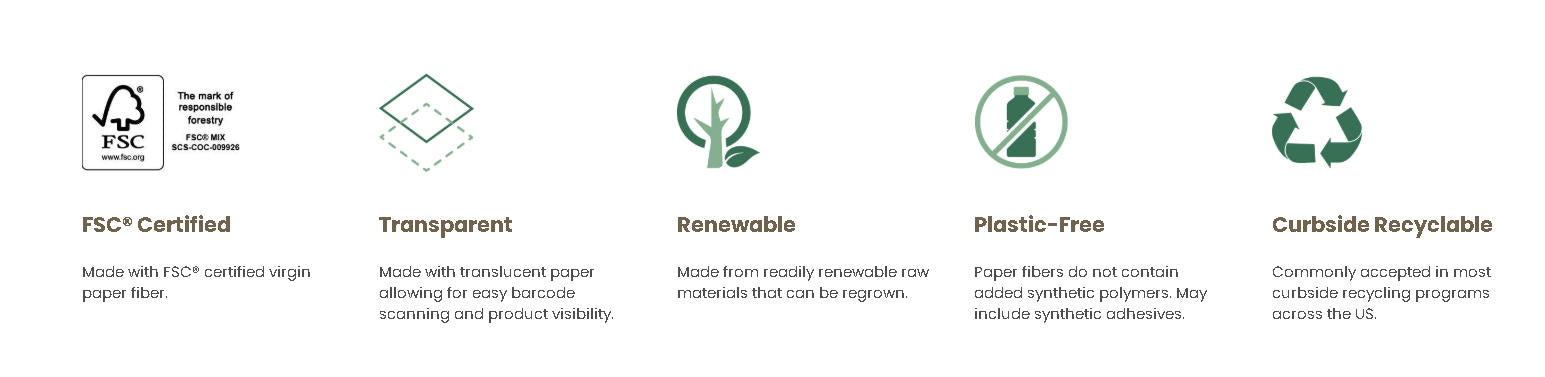 Plastic-free, biodegradable, and FSC certified sustainable paper.